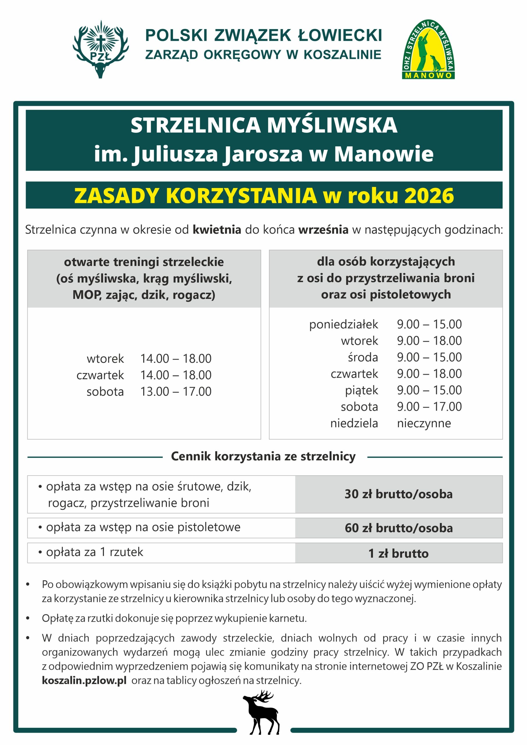 Zasady korzystania z strzelnicy myśliwskiej w Manowie w 2026 roku